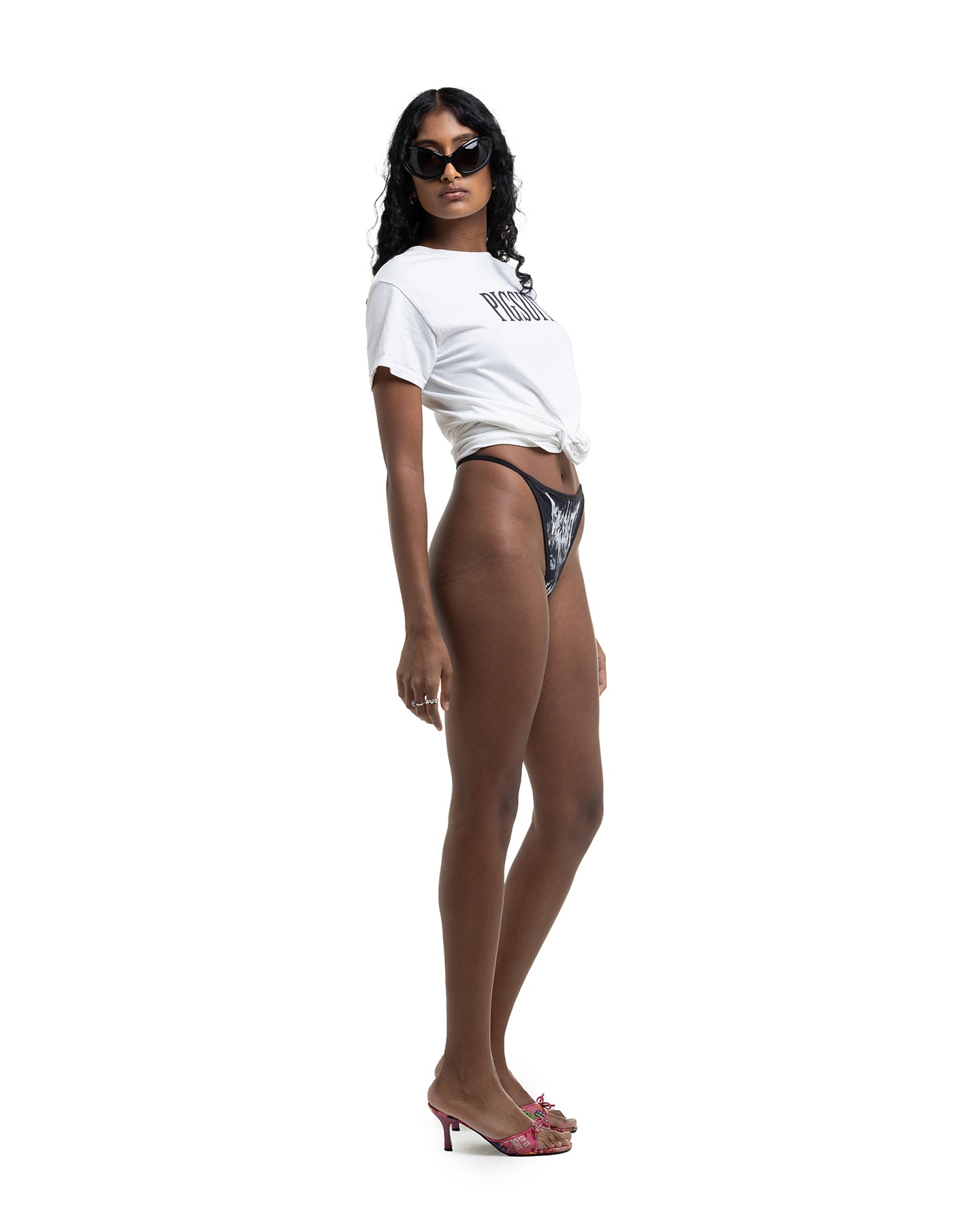 Pigsuit Classic Merch Tee. Black font on regular white cotton tee.