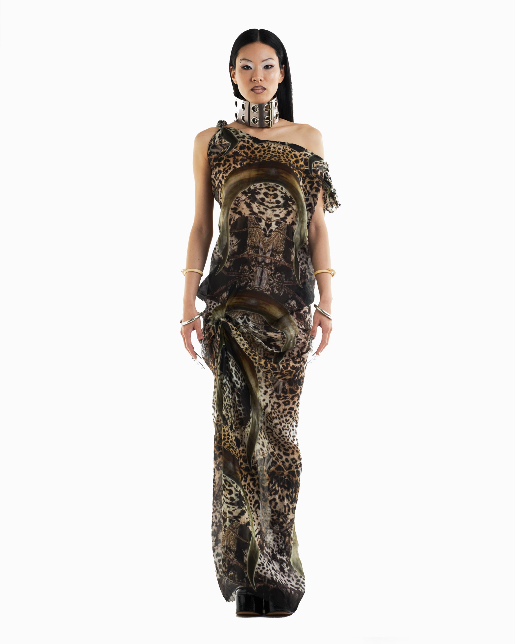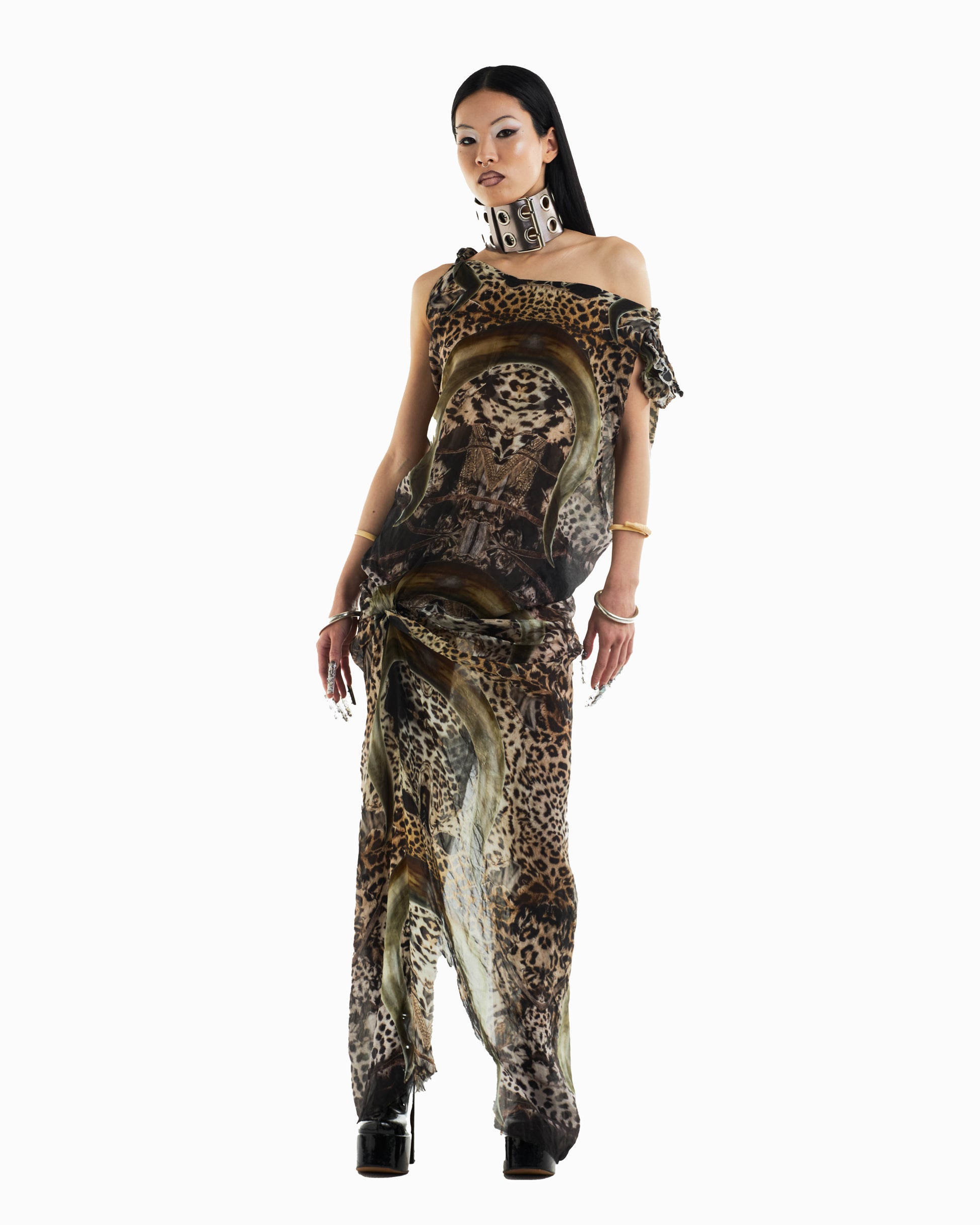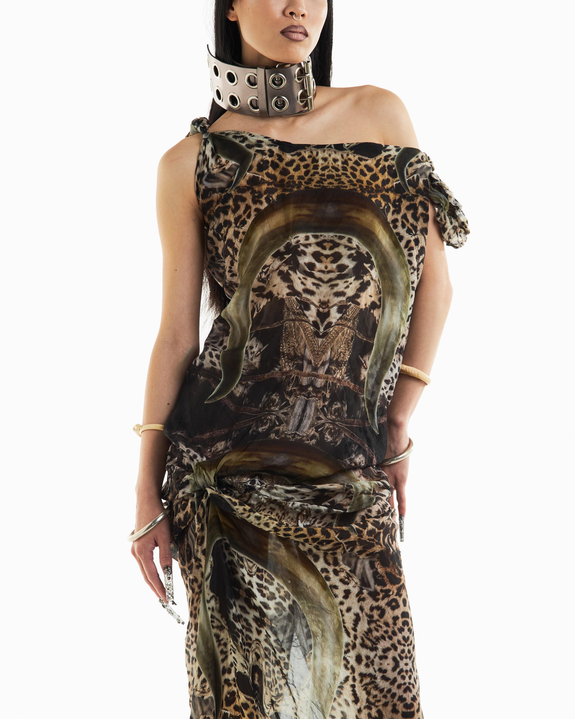 Trompe l'oeil fur leopard print & buffalo horn repeat print designed exclusively by Pigsuit. Handmade and assembled in Australia by Pigsuit.